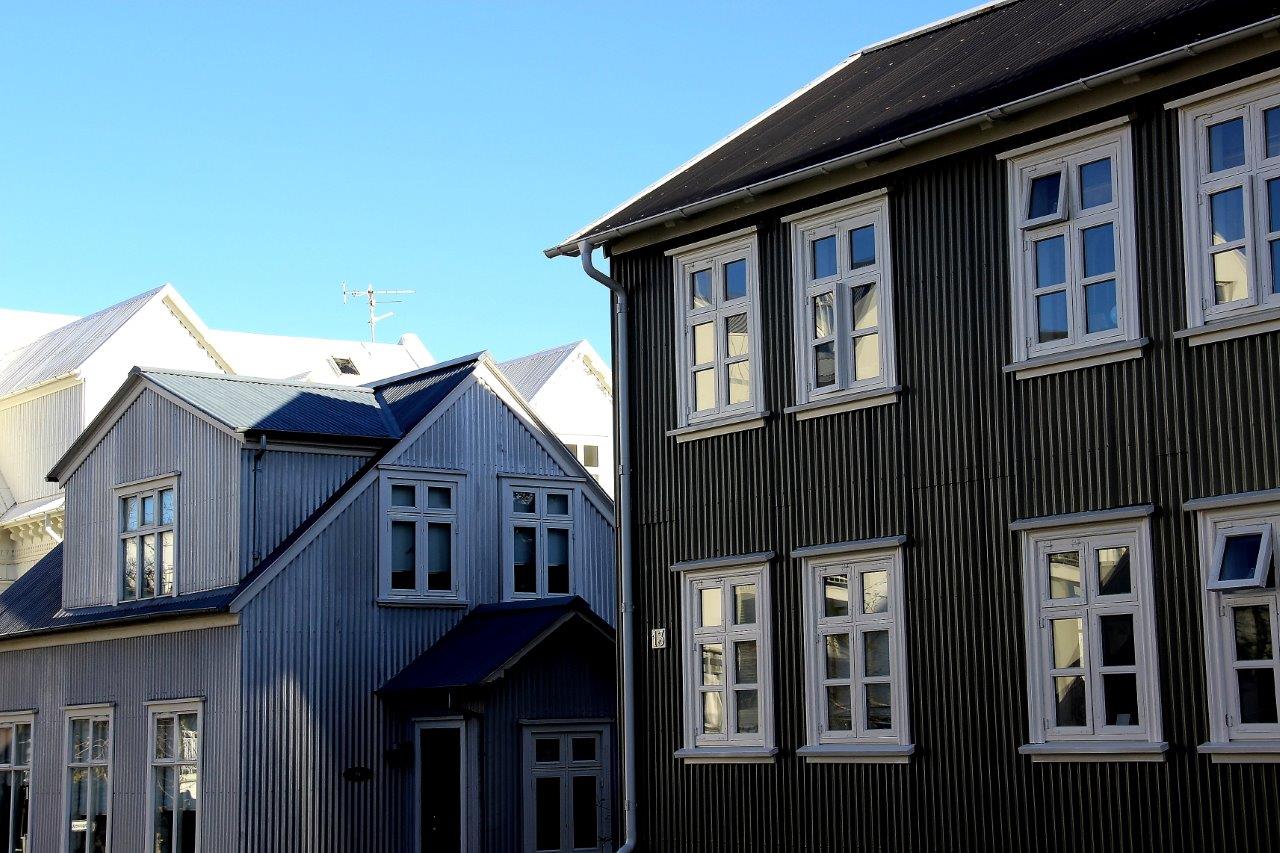 Reykjavík ist auffallend bunt. Die Häuser der Altstadt, die spontan an typisch skandinavische Holzhäuser erinnern, sind in Wahrheit mit Wellpappe verkleidet und in leuchtenden Farben gestrichen. Holz ist knapp in Island. Skulpturen wohin der Blick schweift, auffallend viele Graffiti, die jedoch gut ins Bild passen. Reykjavík atmet Kunst.