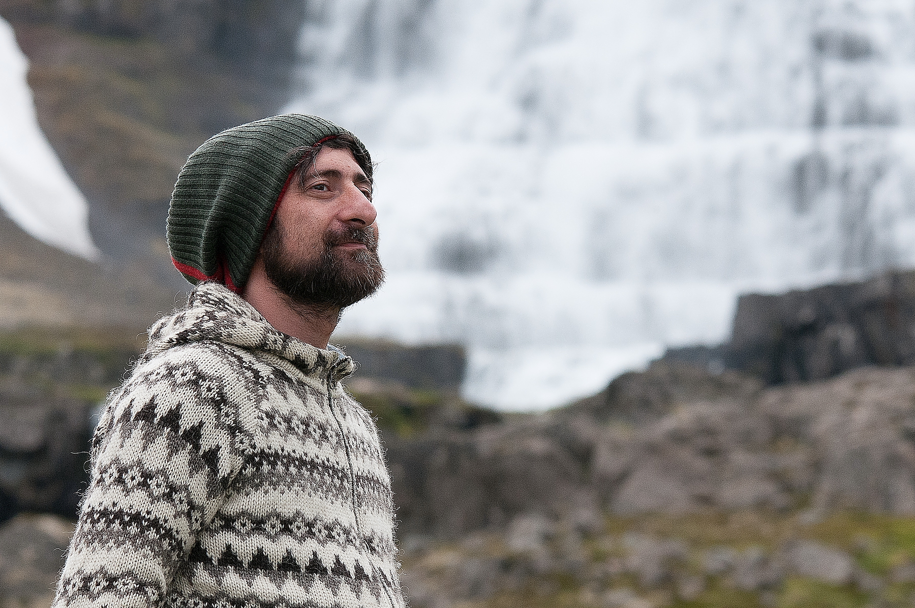 Peppe, der eigentlich Guiseppe heißt und aus Süditalien stammt, ist einer, der in Island blieb. Seine Lopapeysa hat er selbst entworfen und für sich stricken lassen. „Eine ältere Dame hat sie für mich gemacht. Darum mag ich sie besonders.“ Für ihn ist der Pullover der Inbegriff von Freiheit: „Ich bin ein Outdoor-Mensch. Durch und durch. Die isländische Natur, die Freiheit, die man hier genießt, die Möglichkeit, Wasser einfach aus einem Bach zu trinken, gibt mir ein unglaublich gutes Gefühl. Meine Lopapeysa ist Teil von alldem. Sie ist ein wahnsinnig praktisches Kleidungsstück bei jedem Wetter.“