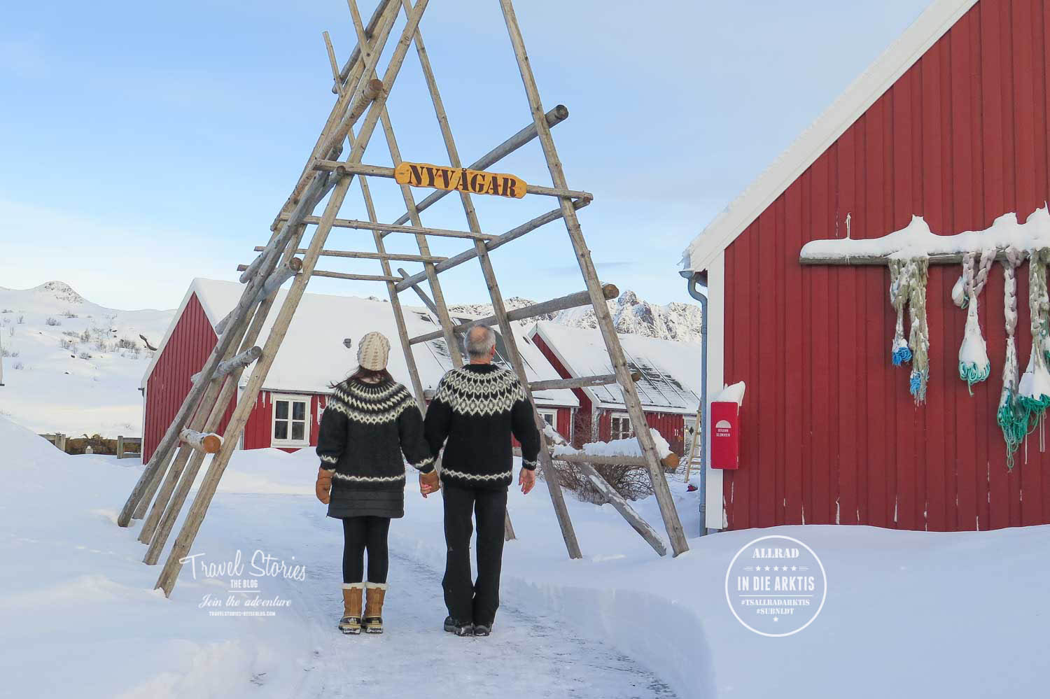 „Wenn wir beide gemeinsam die Lopapeysa tragen, dann fühlen wir uns durch die gemeinsam darin erlebten Abenteuer noch einmal mehr miteinander verbunden.“ Tom erinnert sich beim Tragen an die Weite Islands, die Pferde, genießt die Wärme der Wolle. Merkt aber auch an, dass die ganz schön kratzig und nicht immer angenehm ist. Zuhause in Holland ist es meist viel zu warm für das gute Stück. Aber auf Touren durch Schottland oder Skandinavien gehören die Pullover unbedingt ins Gepäck. Meine Frage nach ihrer persönlichen Lopapeysa-Geschichte erreicht Sabine und Tom als sie gerade durch Schwedisch Lappland und zu den Lofoten unterwegs sind. „Beim Eisfischen bei minus 20 Grad oder auf der Jagd nach dem Nordlicht bei minus 30 Grad hält der Islandpullover uns warm.“