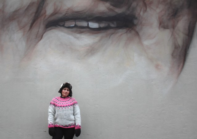 „Als ich im letzten März zum ersten Mal nach Island kam, hatte ich den Erwerb eines Lopapeysas im Hinterkopf. Aber wir waren fast nur in ländlichen Gegenden unterwegs und hatten weder Zeit noch Gelegenheit zum Shoppen. Zum Glück traf ich den Geschichtenerzähler Sigur∂ur in Eiríkssta∂ir. Der Gute erzählte nicht nur von den Wikingern, er bot uns auch die Strickwaren seiner angeblich blinden Schwiegermutter zum Kauf an. Und so fand ich meinen Traumpulli, den ich noch nicht einmal anprobiert habe. Bezahlen konnte ich auch nicht, da das Kartenlesegerät nicht funktionierte. Doch wir haben es auf die isländische Art geregelt. Die ganze Story unter „Wikinger Leif und Wale in Reykjavík.“