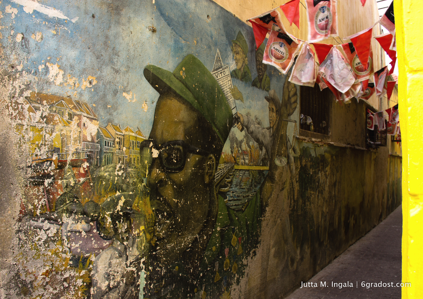 Ich mache unerwartete Entdeckungen und vermisse das, was ich eigentlich gesucht habe, überhaupt nicht. Da sitzt der Mann mitten im Gewimmel von Willemstad in seine Lektüre vertieft. Ein anderer hat ein paar alte Sessel auf dem Bürgersteig erobert und beobachtet in Seelenruhe Passanten. Über ihm an der Wand Nelson Mandela und Malcolm X. Die rundliche Frau mit der Einkaufstasche, die von weitem in die Kamera winkt und die dürre mit dem hübschen Kopftuch, die mir einen weniger freundlichen Blick zuwirft. Momentaufnahmen, Bilder die sich einprägen.