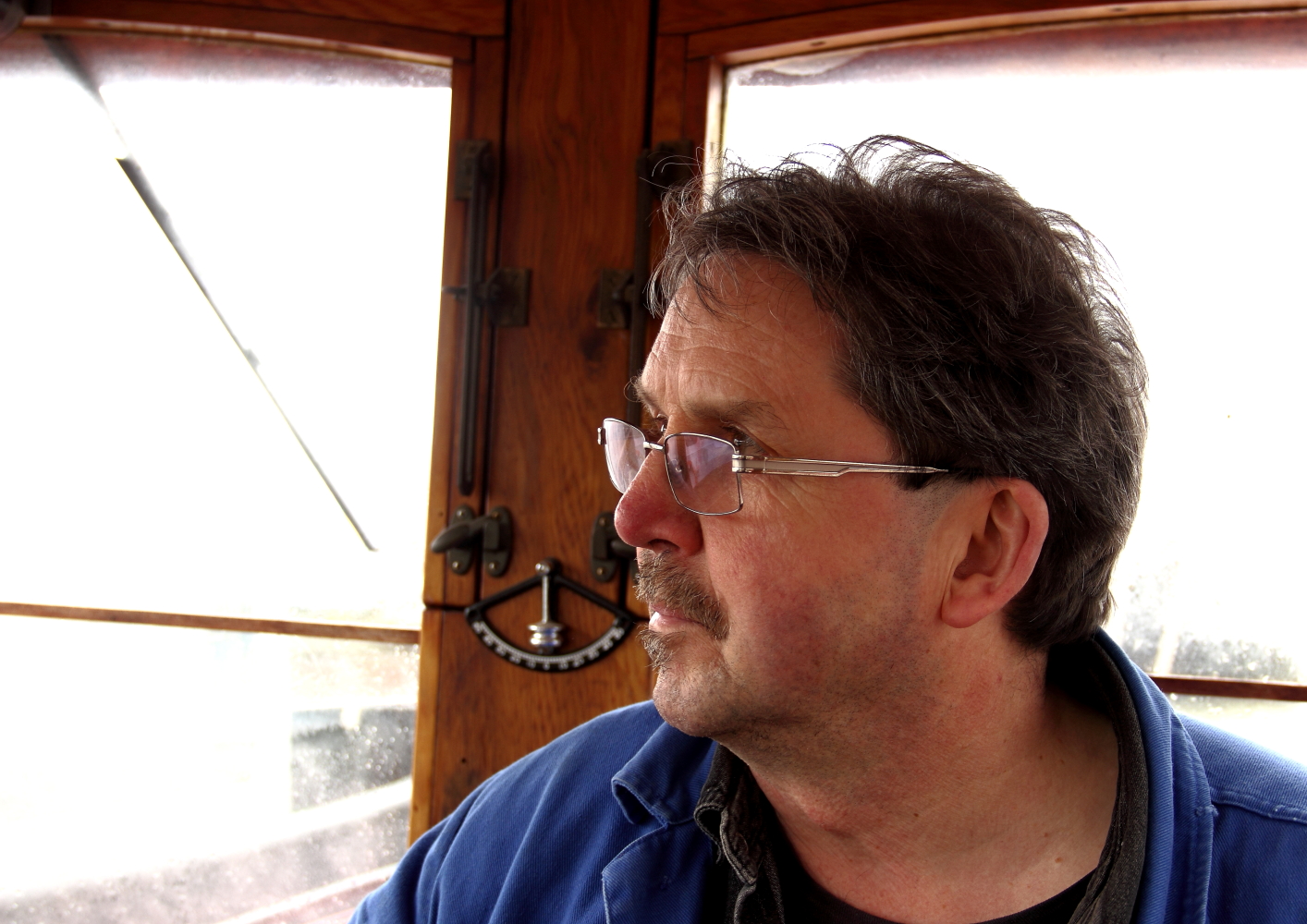 Manfred zeigt mir seinen „Stern“, einen Schlepper, den er vor zwei Jahren in der Nähe von Amsterdam entdeckt hat. Diese Art Boot, im niederländischen „Opduwer“ genannt, kam zum Schieben von Lastkähnen zum Einsatz. Zwischen 1910 und 1940 in großer Zahl gebaut und auf den Binnenwasserstraßen unterwegs, sind die alten Schlepper heute selten geworden. „Es war gar nicht so einfach, das richtige Boot zu finden. Da muss man schon viele Wochenenden investieren und manchen Hafen in Holland absuchen.“ Warum gerade so ein „Opduwer“, will ich wissen?