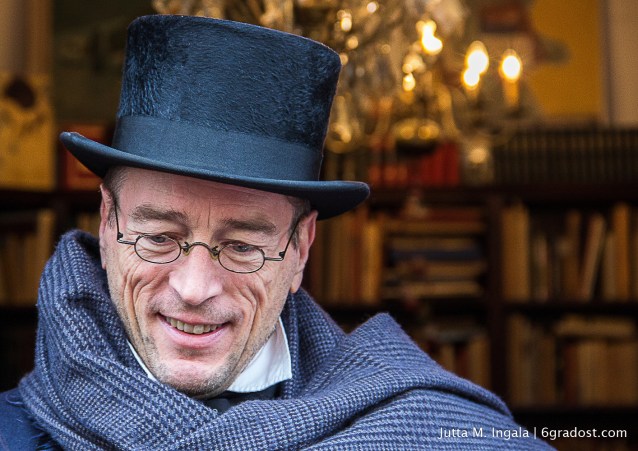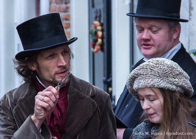Aber war denn Dickens jemals in Deventer? Mitnichten! Zu Beginn der 90er Jahre dachten die Stadtväter recht laut über einen verkaufsoffenen Sonntag in der hübschen alten Hansestadt nach. Das ging einer Deventer Händlerin gewaltig gegen den Strich. Denn nach sechs anstrengenden Tagen hinter der Ladentheke wollte Emmy Strik nicht auch noch an einem Sonntag arbeiten. Wenn schon, dann sollte daraus zumindest ein Fest werden! Dickens-Enthusiastin und England-Liebhaberin wie ich, kam der rührigen Dame die Idee mit dem Festival. Händler sollten mit ihren Geschäften eine Reise ins Viktorianische Zeitalter machen, Bürger das Publikum wie auf einer großen Bühne unterhalten. Kostüme, Attitüde, und ja, sogar die Sprache sollten authentisch wirken.