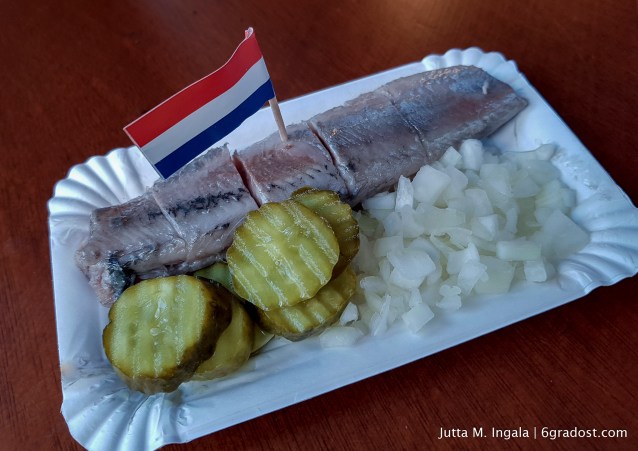 Mehr passt jetzt eigentlich schon nicht mehr in meinen Magen, doch Matjes – besonders mild eingelegte Heringe, die zwischen Ende Mai und Anfang Juni gefangen werden – mit Zwiebeln und Gurke räumen dort ein wenig auf, damit schließlich auch noch ein, zwei Bitterballen meinen Gaumen kitzeln können. Die runden, frittierten Kroketten mit einer Füllung aus Fleischmasse – mehr mag man gar nicht wissen – werden warm in Senf getunkt. Vor dem ersten Bissen unbedingt einmal anpusten, andernfalls verbrennt man sich die Zunge. Ein kühles Bier darf da gerne griffbereit stehen.