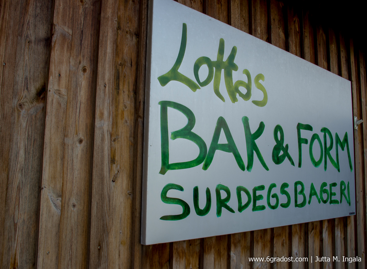 Mit Bäckerei verbinde ich frühes Aufstehen und bin natürlich neugierig wann der Tag beginnt. Um vier? Kopfschütteln: „Nein, früh aufstehen mag ich nicht. Nicht so früh.“ Ihre Teige setzt Lotta praktischerweise 24 bis 48 Stunden vor dem eigentlichen Backen an. Mit Sauerteig aus Emmer oder Dinkel als Basis. Das erklärt die Zeile unterm Ladenschild: „Surdegsbakeri“ – Sauerteigbäckerei. „Weißt du, man darf den Dingen Zeit geben.“ Ja, Zeit, die uns Alltag so häufig fehlt. Wie die Geduld, die mit handwerklich guter Qualität einhergeht. Abkürzungen, nein, die sind nicht ihr Ding.