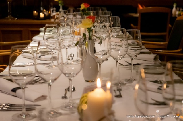Im Restaurant – der gemütlichen Lamm-Stube – ist ein Tisch für uns reserviert. Die Tafel ist elegant eingedeckt. Weiß dominiert, dazu poliertes Kristall, schweres Besteck. Ich mag die Materialität und die schöne Haptik. Herbstlich dezente Farbtupfer setzen kleine Zierkürbisse. Ideen für die Dekoration im Lamm stammen übrigens von der Chefin. Sabine Bramm liebt es schlicht, modern und frisch und bedient sich gern all dessen, was die Natur im Wechsel der Jahreszeiten hergibt. Es wirkt sehr ehrlich, wie selbstverständlich zum Lamm gehörend. Der Abend ist kurzweilig. Jeder ist voll des Lobes über unser gemeinsam kreiertes Menü. Gezaubert aus all dem, was die Region hergibt. Von uns Gästen mit Neugierde und Enthusiasmus, von den „Könnern der Küche“ mit ebendem: Expertise. Gepaart mit Leidenschaft, dem Fundament einer guten Küche.