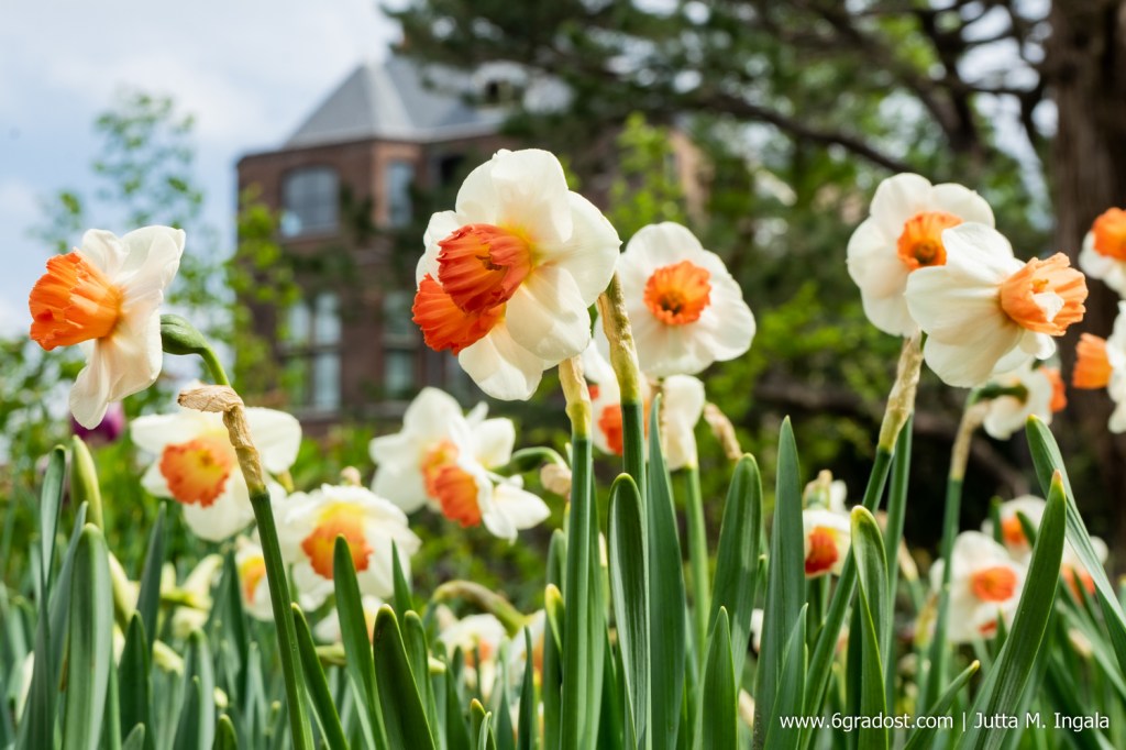 Es sind die historischen Tulpen, die im Hortus Botanicus im Mittelpunkt stehen. Im „Bollenbak“ – der Zwiebelkiste – finden sich Besucher auf einer Zeitreise wieder und erfahren, wie sich moderne Sorten aus immer neuen Kreuzungen entwickelt haben. Im Frühling wiegen sich die alten Sorten auf zarten Stängeln in den Freilandbeeten. Darunter die nach Clusius benannte „Tulipa clusiana“ mit spitzen, weiß-purpurnen Blütenblättern. Daneben Schachblumen, Schneeglöckchen und Hyazinthen. Seltene Sorten, manche vom Aussterben bedroht.