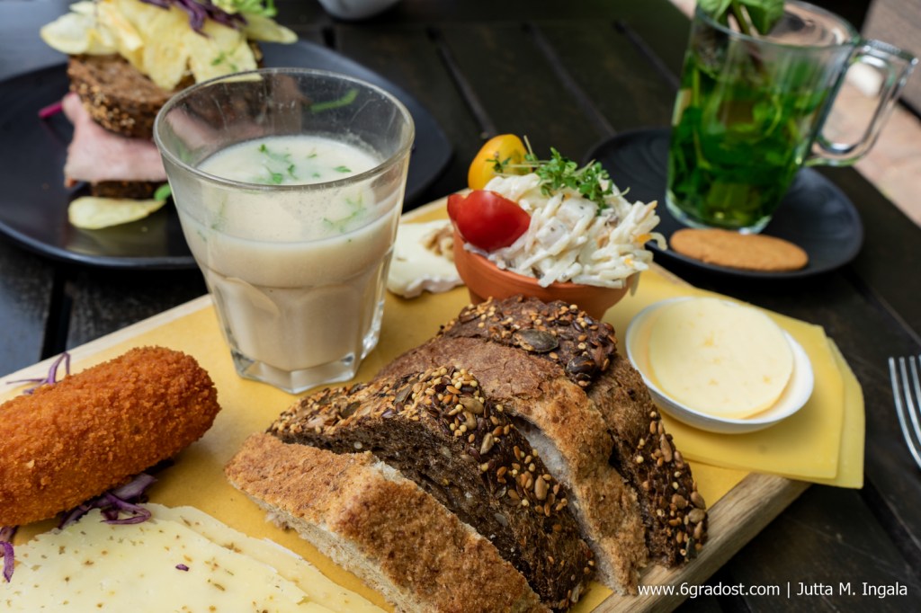Dem „Smaak van de Hortus“ – dem Geschmack des Gartens – können Besucher auch im angeschlossenen Hortus Café nachspüren. Bei gutem Wetter hinter alten, weinumrankten Mauern auf der Terrasse beim Gewächshaus oder aber drinnen, umgeben von Grün. Serviert werden einfache, kleine Gerichte aus allem, was der eigene Garten und die Felder von Landwirten aus der Region gerade hergeben.