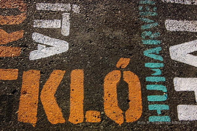 Als hätte jemand einen bunten Teppich zum Willkommensgruß ausgerollt: In dicken Lettern, orange, türkis und weiß, nebeneinander und kopfüber sind sie auf den Asphalt gepinselt, die Namen heimischer Fische und Worte, die nur den Eingeweihten Aufschluss geben. „Bleiða“ etwa heißen die Fanggründe für Lobster, „kló“ – Wer dächte da nicht spontan an „Klaue“? – ist dessen Schere, „hali“ der Schwanz.