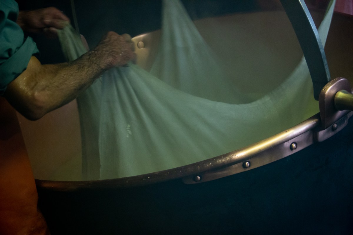 Käsebruch aus der Molke heben